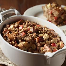 - Add bread and apple cubes. Add fruit or nuts if desired. Mix well.