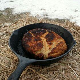 - 3. Squeeze the mix out of the bag and onto the warmed pan (not scalding hot — if the oil is smoking, it’s way too hot). The pan can be warmed over the fire if you have a grate, or leaned against a few logs near the heat source. It shouldn’t hiss or sizzle like a pancake batter…that means things are too hot. Cool it off and be patient. The bread will start to rise slowly.