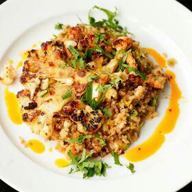 - 4. Serve immediately, topping each plate of fried rice with a slab of cauliflower. Garnish with sliced scallion greens, cilantro, and/or chili oil if desired.