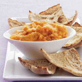 - 2. While pita bakes, combine sweet potato, yogurt, honey, chile powder, and salt in a small bowl; stir with a fork until smooth. Serve with warm pita chips.