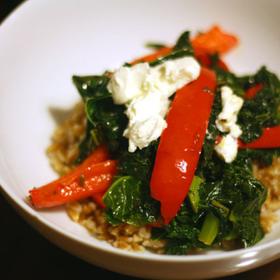 Farro with Sweet Red Bell Peppers, Kale, and Goat Cheese