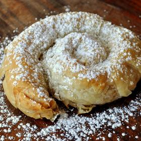 - 6. Repeat steps 3 and 4 twice more, creating two more coils. Bake coils until golden, about 40 minutes. Let cool completely then dust with confectioners' sugar. Serve warm or at room temperature.