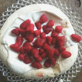 - scoop off the cream from the coconut milk. save the rest for future use. whip the coconut cream with vanilla until thick. top pavlova with cream and fruit, serve immediately.