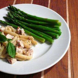 - In a large pot of boiling water, boil the penne until al dente, about 8 minutes.