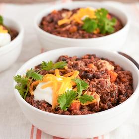 - Coat slow cooker with cooking spray. Place onion, carrots and garlic in bottom. Top with chicken, lentils and black beans. Stir in broth, tomato sauce, chili powder, cumin and salt.