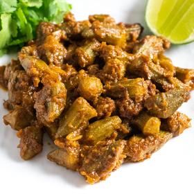 - 3. Stir in garlic and ginger and cook until fragrant, about 30 seconds. Stir in tomato paste, stir and cook until paste has colored the contents of the pot a reddish-brown, about 1 minute. Mound onions, ginger, and garlic in center of pot and add spice mixture directly on top (this is to guard against scorching the spices). Stir together, then cook until spices are bloomed and mixture is very fragrant, 30 seconds to 1 minute. Add water and stir, scraping bottom of pot with wooden spoon to dislodge any stuck-on bits. Add tomato sauce and okra and stir to break up frozen okra. (Okra pieces should be just submerged in the liquid; if not, add more water to cover them). Bring contents of pot to a boil, reduce heat to low, and simmer, stirring occasionally, until okra is tender, most of excess liquid has cooked off, and okra is thickly coated in sauce, 10-15 minutes. Top with cilantro and serve immediately as part of a larger meal with rice or paratha, passing lime wedges alongside.