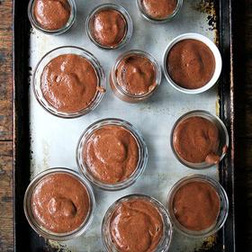 - Fold the whipped aquafaba into the chocolate-almond milk mixture in batches—be delicate if you can. Transfer the chocolate mousse into small serving vessels, then transfer to the fridge to let the mousse set up — in about an hour it will start to set. Store in fridge.
