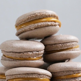 - Sift powdered sugar, almond meal, and dark cocoa powder into the whipped aquafaba, and gently fold ingredients together.